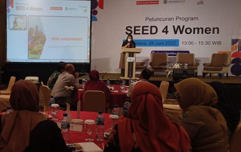 Program itu bernama SEED 4 Women yang diinisiasi oleh kerjasama antara Mercy Corps Indonesia dengan menggandeng Citi Indonesia dan Kemenkop UKM. Tujuannya, untuk mendorong pemberdayaan ekonomi usaha kecil yang dipimpin perempuan melalui inklusi keuangan. Kegiatan itu diluncurkan pada Selasa (28/6/2022) di Hotel Santika Premiere Malang, Kota Malang, Jawa Timur.