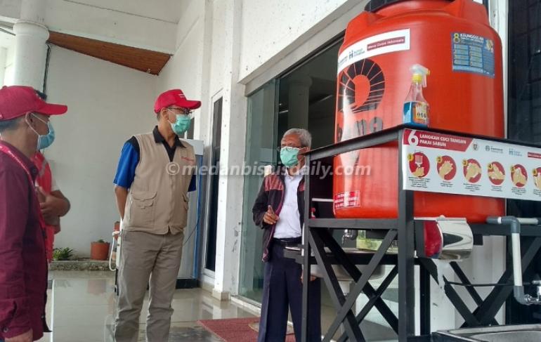 " Medanbisnisdaily.com - Doloksanggul. Pemerintah Kabupaten Humbang Hasundutan menerima bantuan fasilitas alat cuci tangan,alat pelindung diri (APD), paket perlengkapan kebersihan,promosi kesehatan dan bantuan pangan non kesehatan diperuntukkan bagi Puskesmas dan masyarakat terdampak Covid-19 dari Yayasan Mercy Corps Indonesia dan The Starbucks Foundation, Kamis (22/10/2020), di Pendopo Kantor Bupati, komplek perkantoran Bukit Inspirasi, Doloksanggul, Humbang Hasundutan, Sumatera Utara "