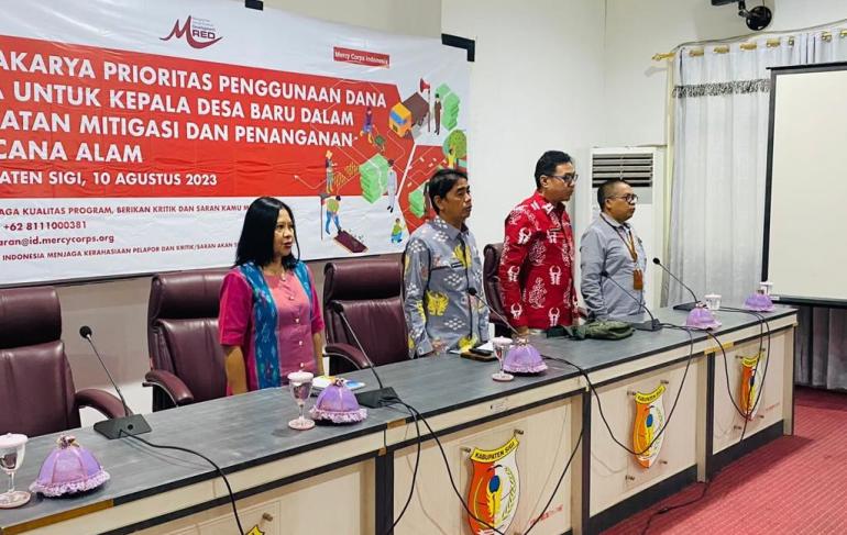 Lokakarya bertemakan "Prioritas Penggunaan Dana Desa dalam Kegiatan Mitigasi dan Penanggulangan Bencana Alam" diselenggarakan oleh Pemerintah Kabupaten Sigi bekerja sama dengan Mercy Corps Indonesia, Kamis (10/08/2023). Acara ini merupakan upaya untuk memberikan pemahaman kepada kepala desa di wilayah Sigi tentang pengelolaan dana desa dalam konteks mitigasi dan penanggulangan bencana alam.
