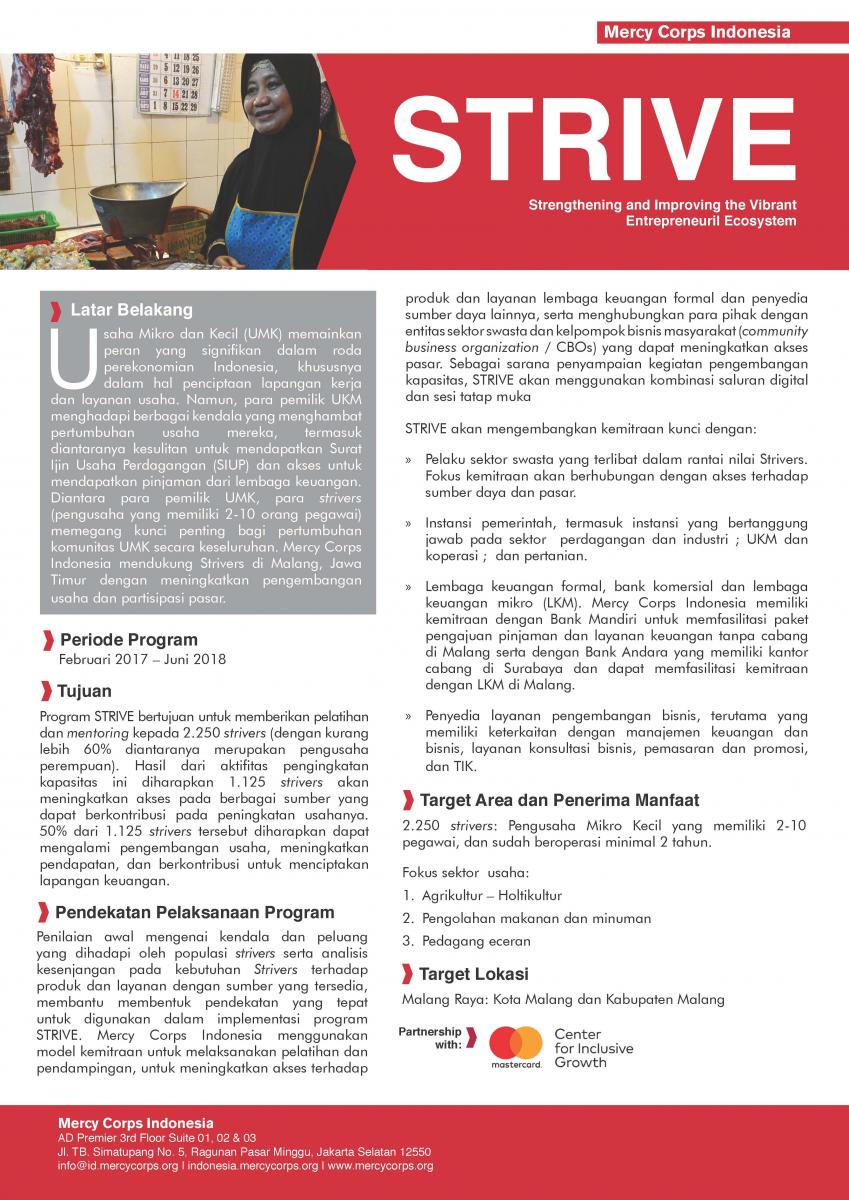 Meningkatkan Pemberdayaan Ekonomi STRIVE - One pager Bahasa Dokumen : Bilingual 18 December 2019 / Comments Dikirim oleh darisandi pada 18 December 2019 File Download (Right click - Save link as.. for direct download) ONEPAGER STRIVE_BILINGUAL.pdf (840.48 KB)