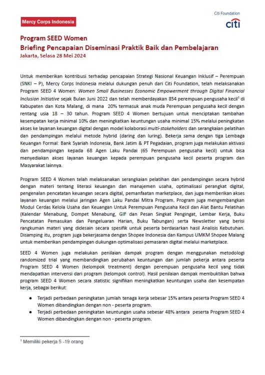 Program SEED 4 Women - Pemberdayaan Ekonomi Perempuan Pengusaha Kecil Melalui Inisiatif Inklusi Keuangan Digital